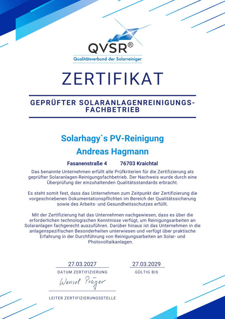 Willkommen bei Solarhagy`s PV-Reinigung,